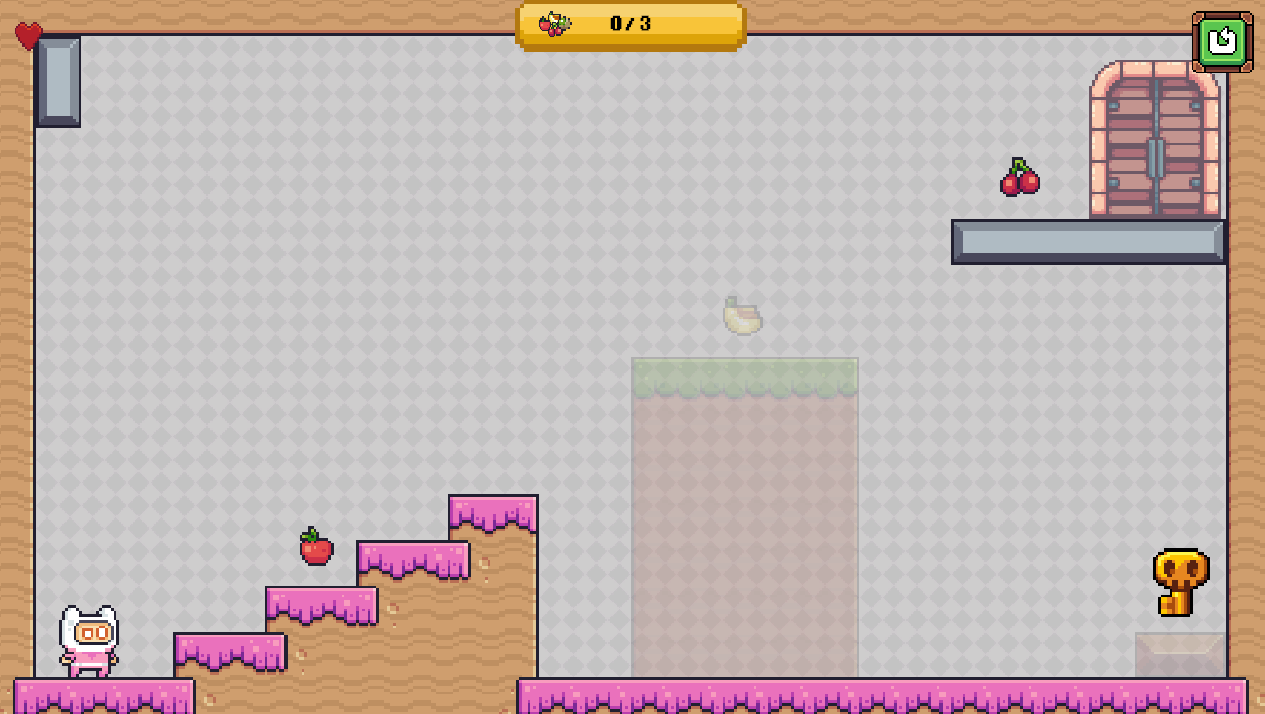 Explore each level to collect delicious fruits and find the key to unlock the door to the next stage—but beware of dangerous enemies!