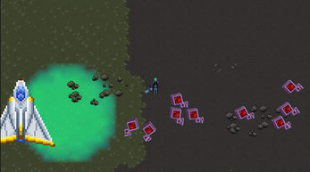 Fight enemies, collect batteries from mines, charge your ship, escape the planet.